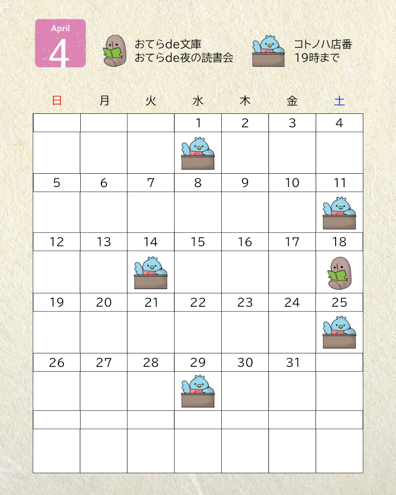 ※空調の影響で、1・2月、7・8月はおやすみさせていただきます。